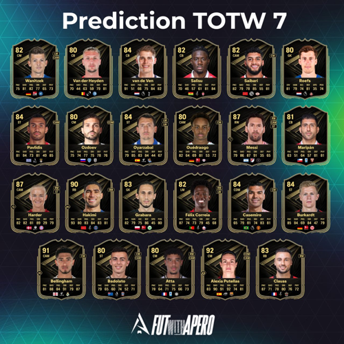Certains autres joueurs mériteraient également leur place dans la TOTW 7, mais il faut faire des choix. Voici ma prédiction illustrée pour cette équipe idéale.