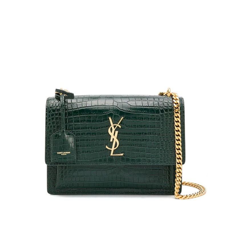 人氣推薦:綠/酒紅 ysl saint laurent sunset 中號 鱷魚紋壓印皮革單肩包