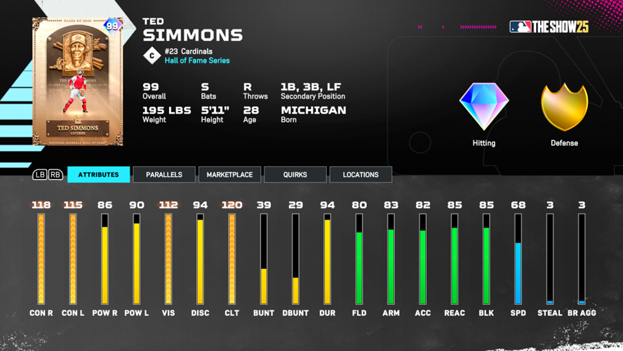 Lee is not only more budget-friendly but also plays beyond his base attributes and offers the advantage of being a switch hitter, helping to neutralize pitcher matchups.