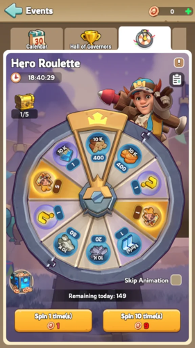 The Hero Roulette event allows players to spin up to 150 times daily, totaling 450 spins across the three-day duration.